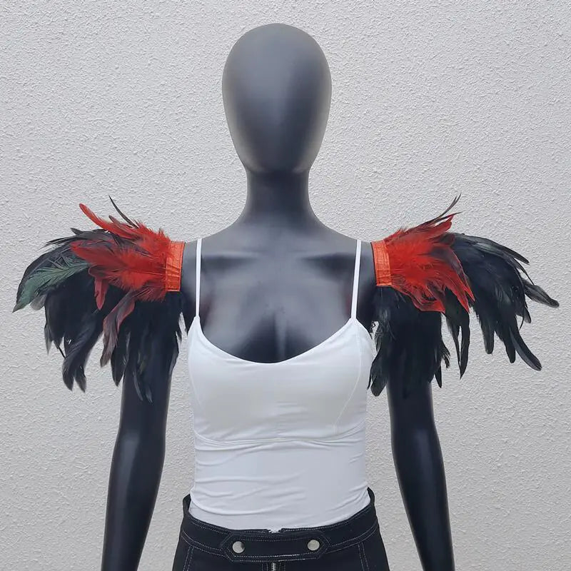 Elevate your next event with our stunning Feather Epaulettes, the perfect accessory for weddings, stage performances, and themed parties. Available in a variety of 10 vibrant colors, these dramatic feather shoulder pieces are designed to make you stand out. Choose from classic shades like Black, or go bold with combinations like Red + Black or Sapphire Blue + Black. Custom color options are also available upon request, ensuring you find the perfect match for your outfit!