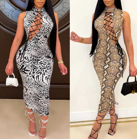Discover the perfect blend of elegance and style with our stunning Women's Dress Printed Lace-up Cutout. Designed for the modern woman, this dress is available in two beautiful colors: white and brown.